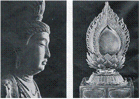 The kond"o or golden hall of the Horyuji is adorned with murals, whose style has close affinities to that of India. It reflects the artistic achievements of the seventh century. In the years AD 643-646, 648-649, and 657-661 the entourage of the Chinese envoy Wang Hsüan-ts’e copied the frescoes on the walls of monasteries in India. Later on these paintings were compiled in 40 fascicules. Some of them were taken to Japan by the Korean artist Honjitsu, and they became the models for Horyuji murals. The Buddhas and Bodhisattvas of Horyuji, with a rich dark patina of centuries, evince a particular purity of line, surface and decoration and desire to see humanity, flesh and blood, fused in most abstract of deities. The Horyuji monastery has yielded one of the most ancient Sanskrit manuscripts of the Usn+isavijay"a-dh"ara{n+i in the Gupta script.