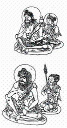 Shiva and Parvati, both riding on the bull, in the tradition of Shingon. 11th century (Ken-i’s drawing).