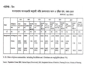 Religious Composition and Growth of population in Bangladesh, 1951-2001